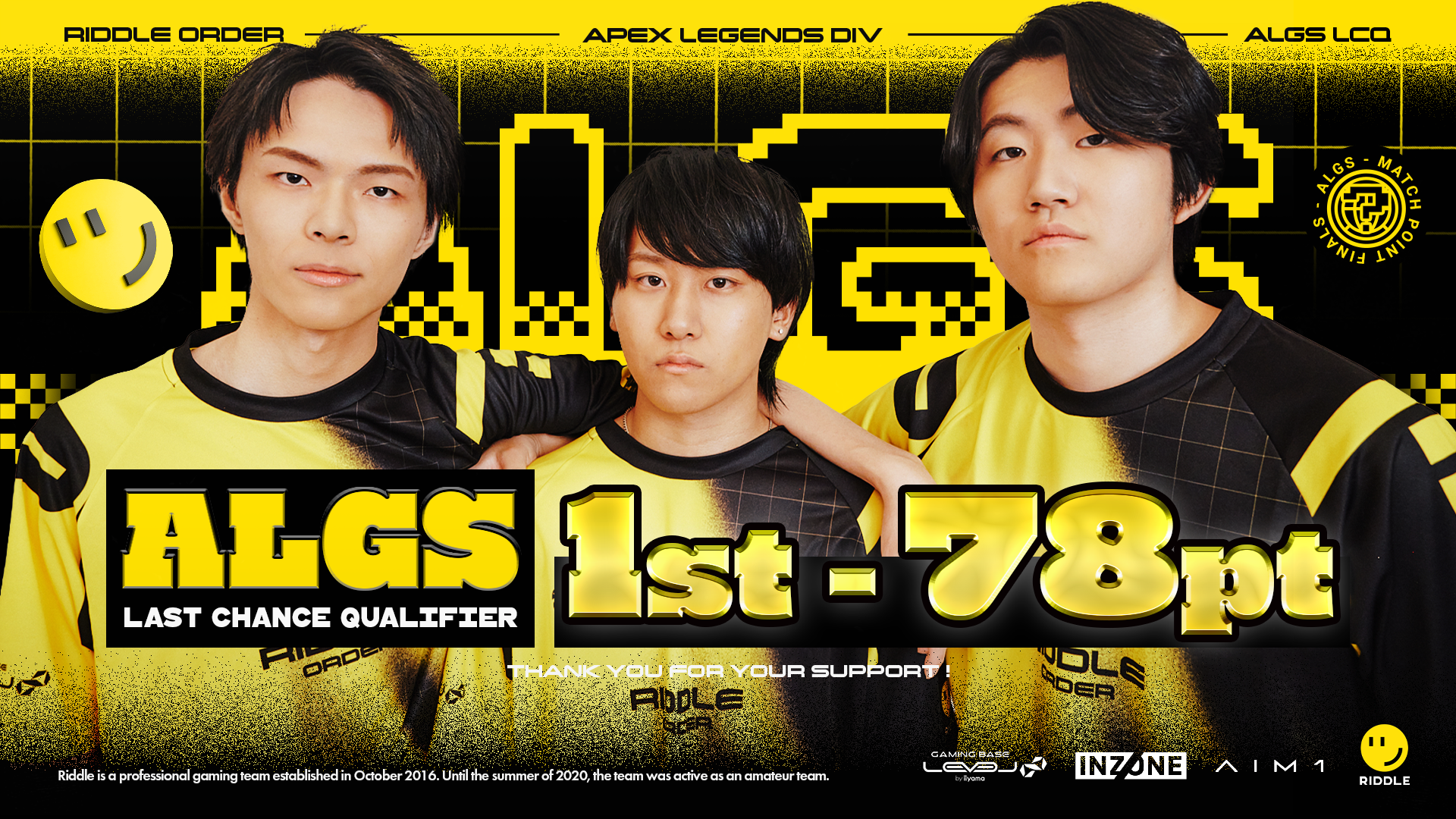 引き続き、Apex Legends部門へのご声援をよろしくお願いいたします